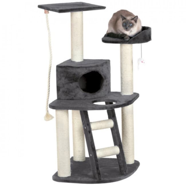 Votre chat a aussi un coin confortable pour se reposer grâce au revêtement en fourrure 100% acrylique qui offre un couchage douillet.